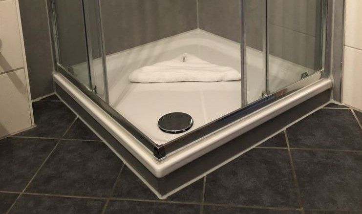 • Bad mit Dusche, WC, Handtuchheizkörper, Dusche mit flachem Einstieg, Föhn