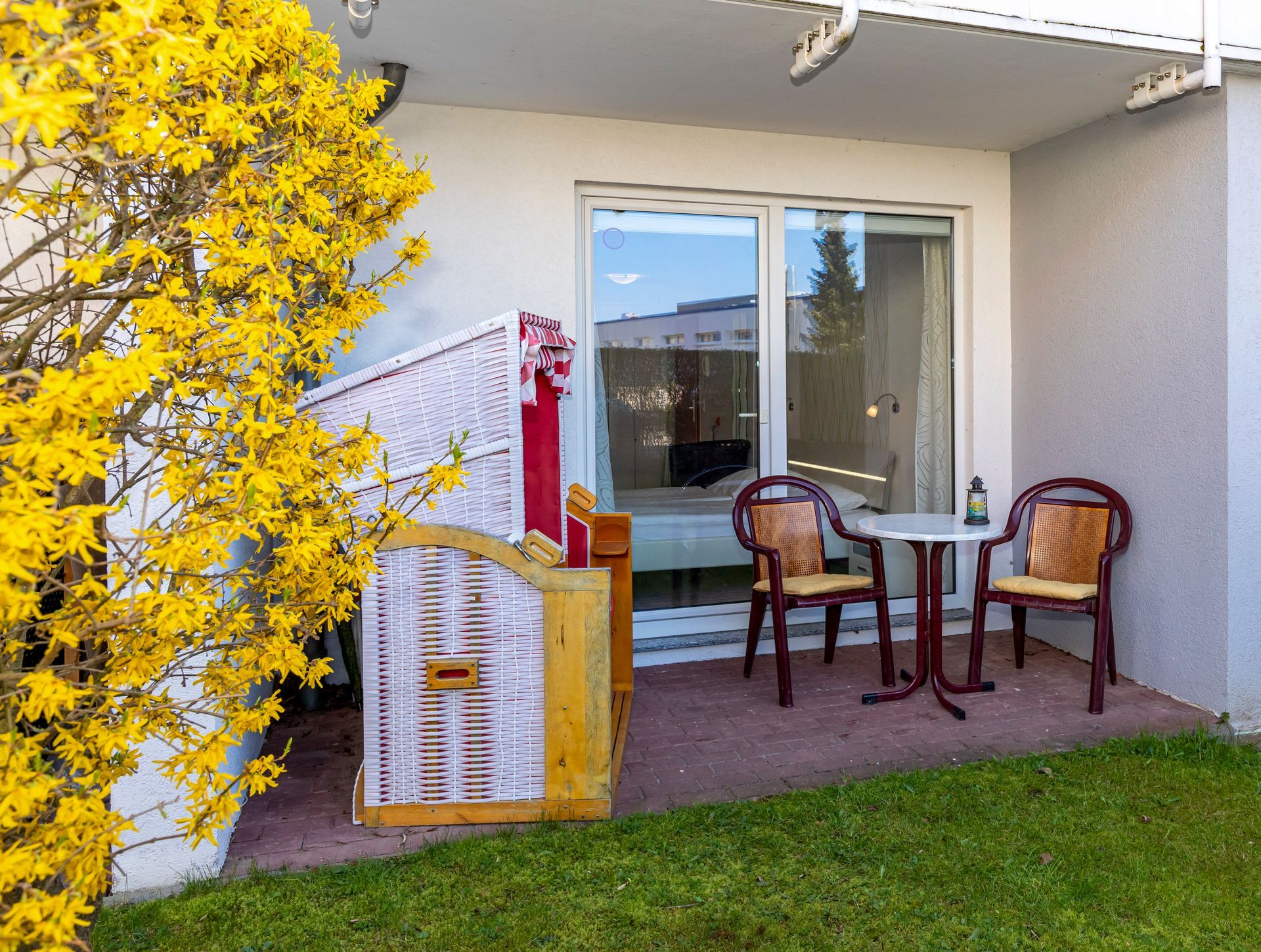 • möblierte und überdachte Terrasse mit Strandkorb